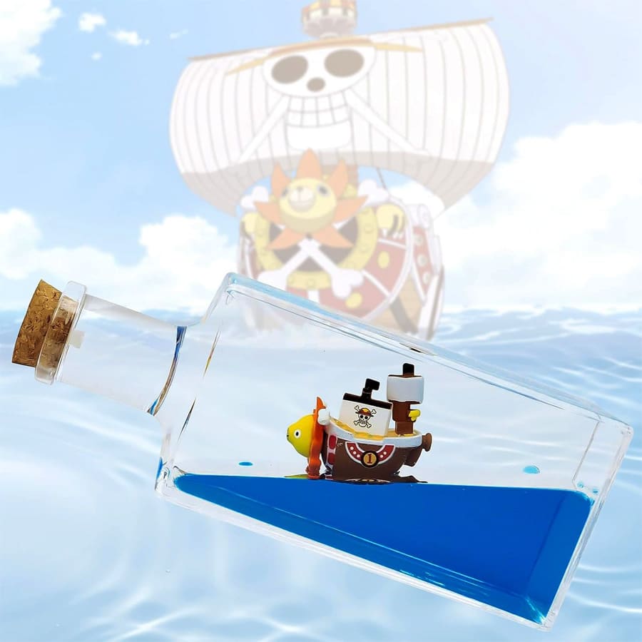 Sail the seas with an unsinkable One Piece ship in a bottle, a marvel that defies the tides. This stunning display captures the spirit of the Thousand Sunny, forever afloat in its liquid sea. Embrace the resilience and adventure of One Piece.